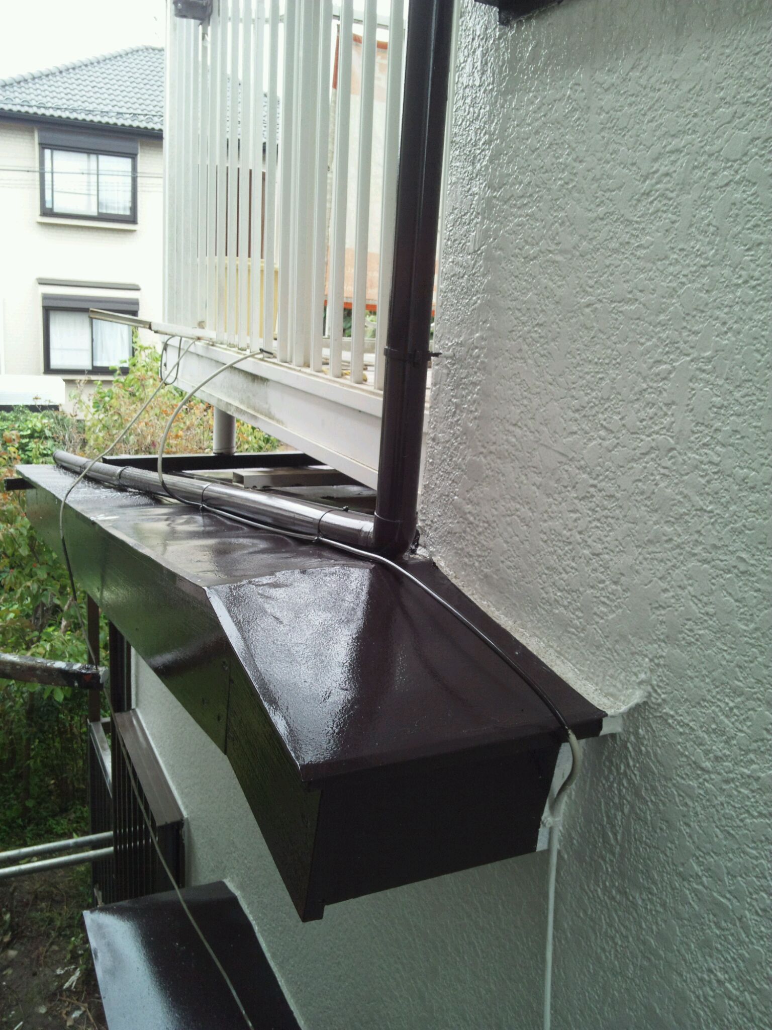 作業内容は木枠、トタン霧除け、雨樋等の細かい塗装をマイルドシリコンにて施工。