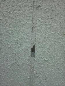 外壁劣化のためにそこから浸みて雨漏れになっているのではと考えております。その他屋上防水に多少のクラックがあるので、そこもコーキング処理。勿論外壁のコーキング補修も行い、本日一日で作業は完了します。