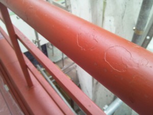 鉄部へのサビ止め塗装。及び木部下塗り。