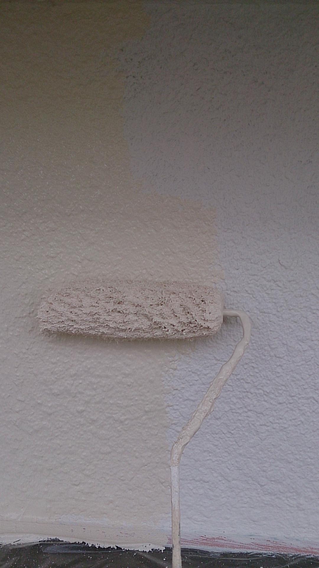 昨日は雨で養生までの施工でしたが、本日外壁の塗装をいたしたいと思います。