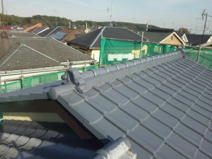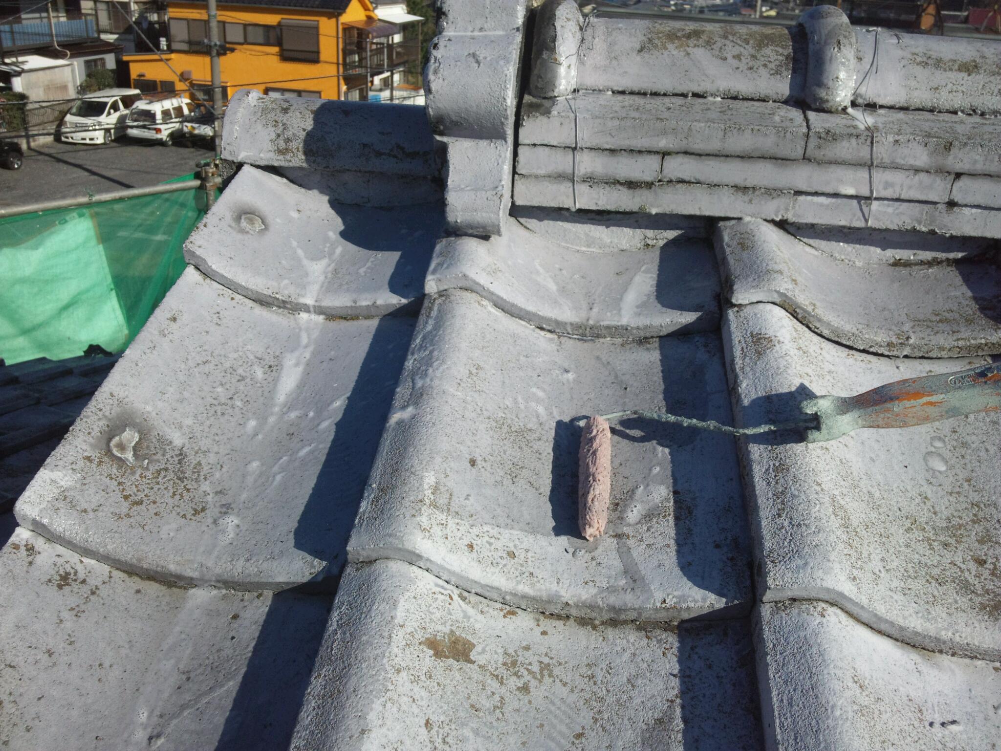 瓦屋根のプライマー塗布。及びヤネフレッシュにて中塗り。