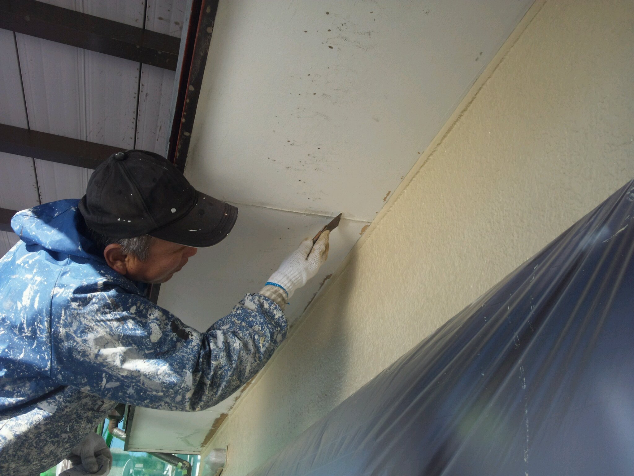 軒天の塗装は透湿型塗料のセラミタウンにて施工。