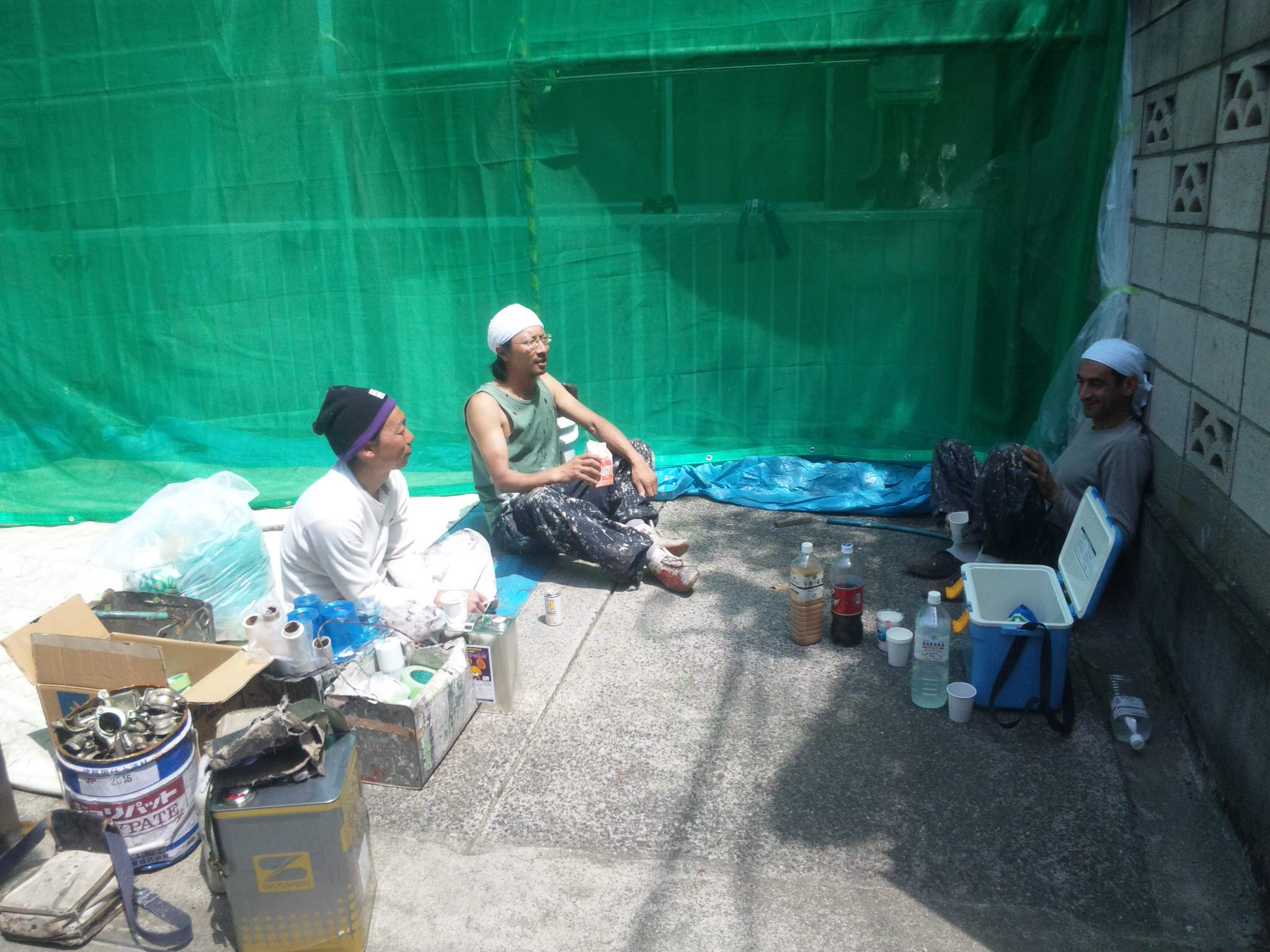 職人の憩いのひと時です。一服の時間とお昼の時間が安らぎの時です。