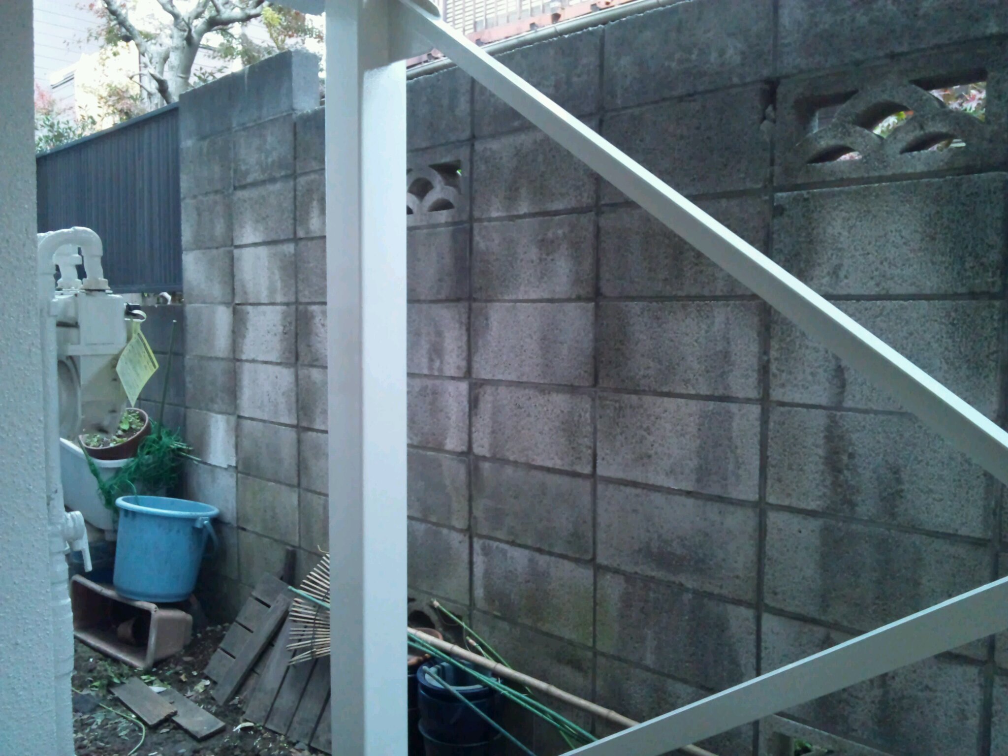 駐車場の鉄骨柱の塗装をして掃除を終え終了になります。