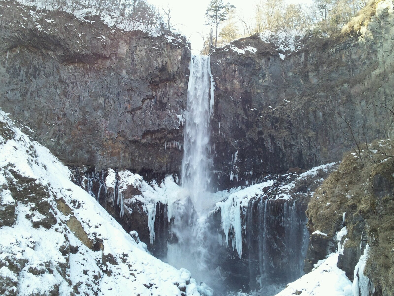 さて、お正月に日光の華厳の滝に行きました。見てくださいこの雄大な景色。雪に覆われ見事としか言いようのない姿です。一年のうちにそれほどない景色のようです。