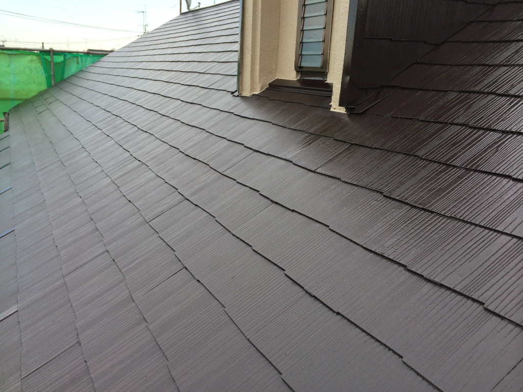コロニアル屋根塗装の上塗りをヤネフレッシュにて。