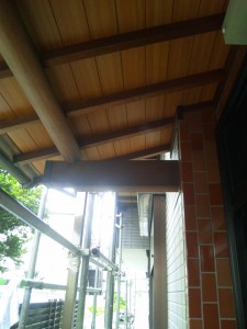 軒天部分の梁等の木部を漂泊をして、防腐剤入りのオイルで仕上げます。