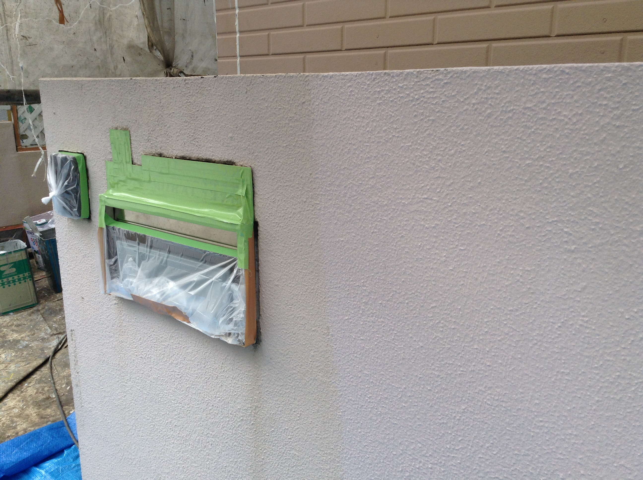 作業は養生から始めて下塗りフィーラー塗装。