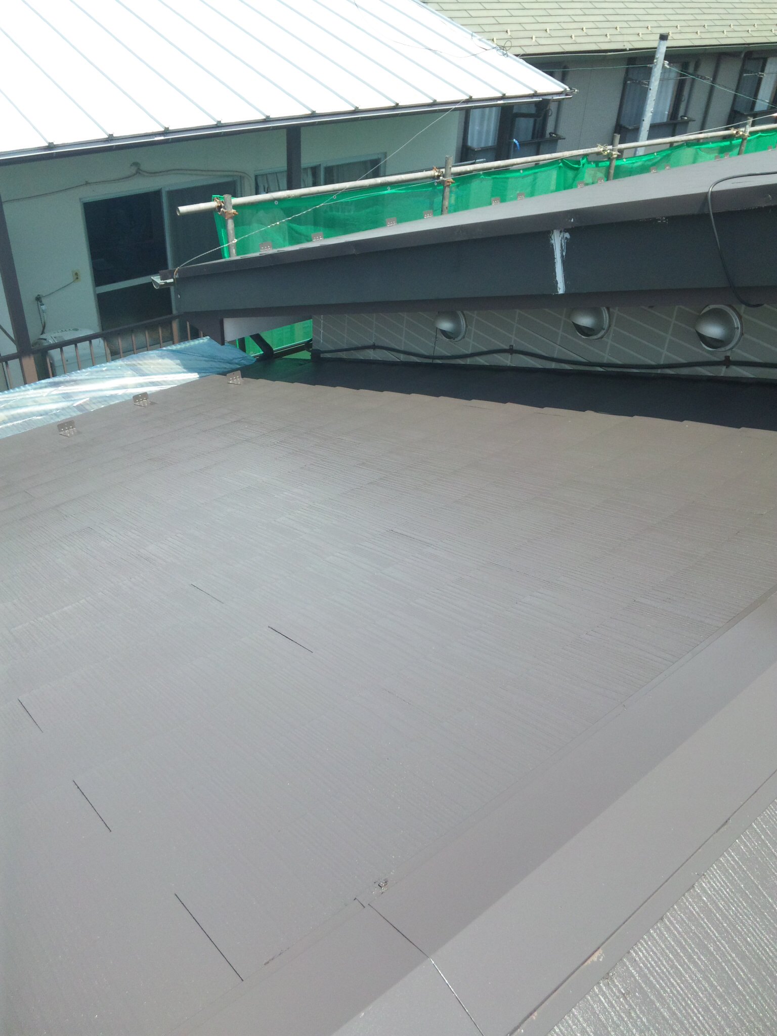 さて、現場の進行状況ですが、本日はコロニアル屋根の中塗り、上塗りをさせていただきました。