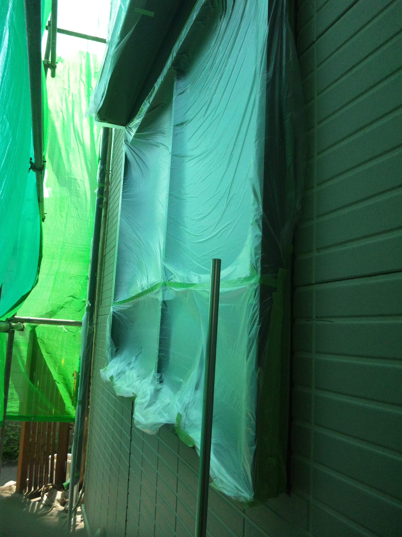 そして養生を行いました。明日は日曜でお休みをいただくため、南側は養生をしておりません。