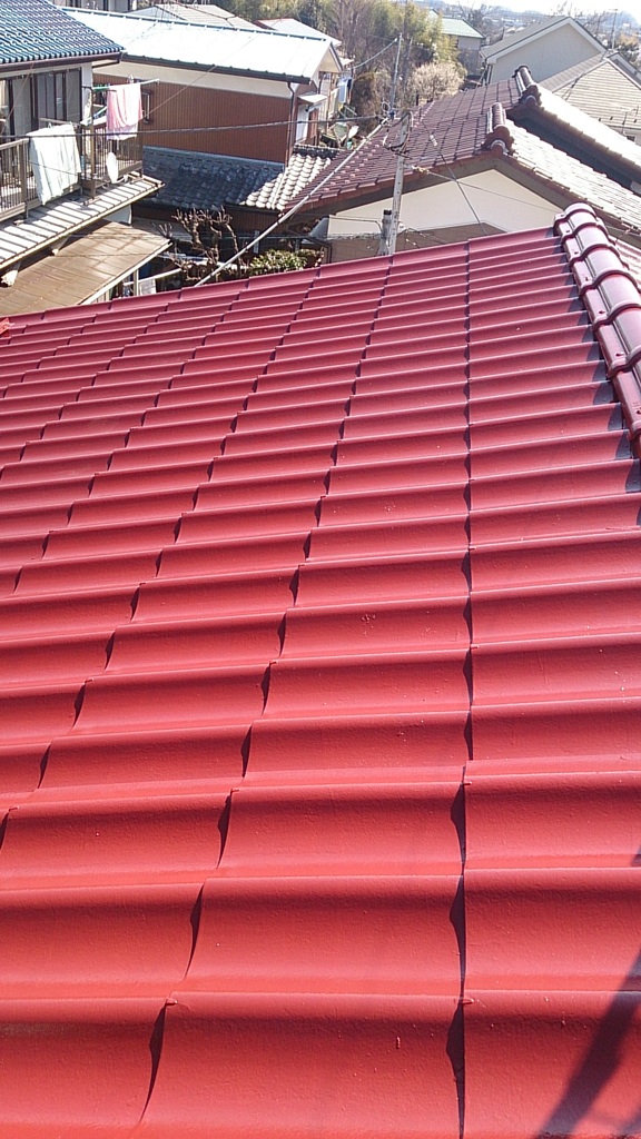 屋根の上塗りをヤネフレッシュにて塗装。