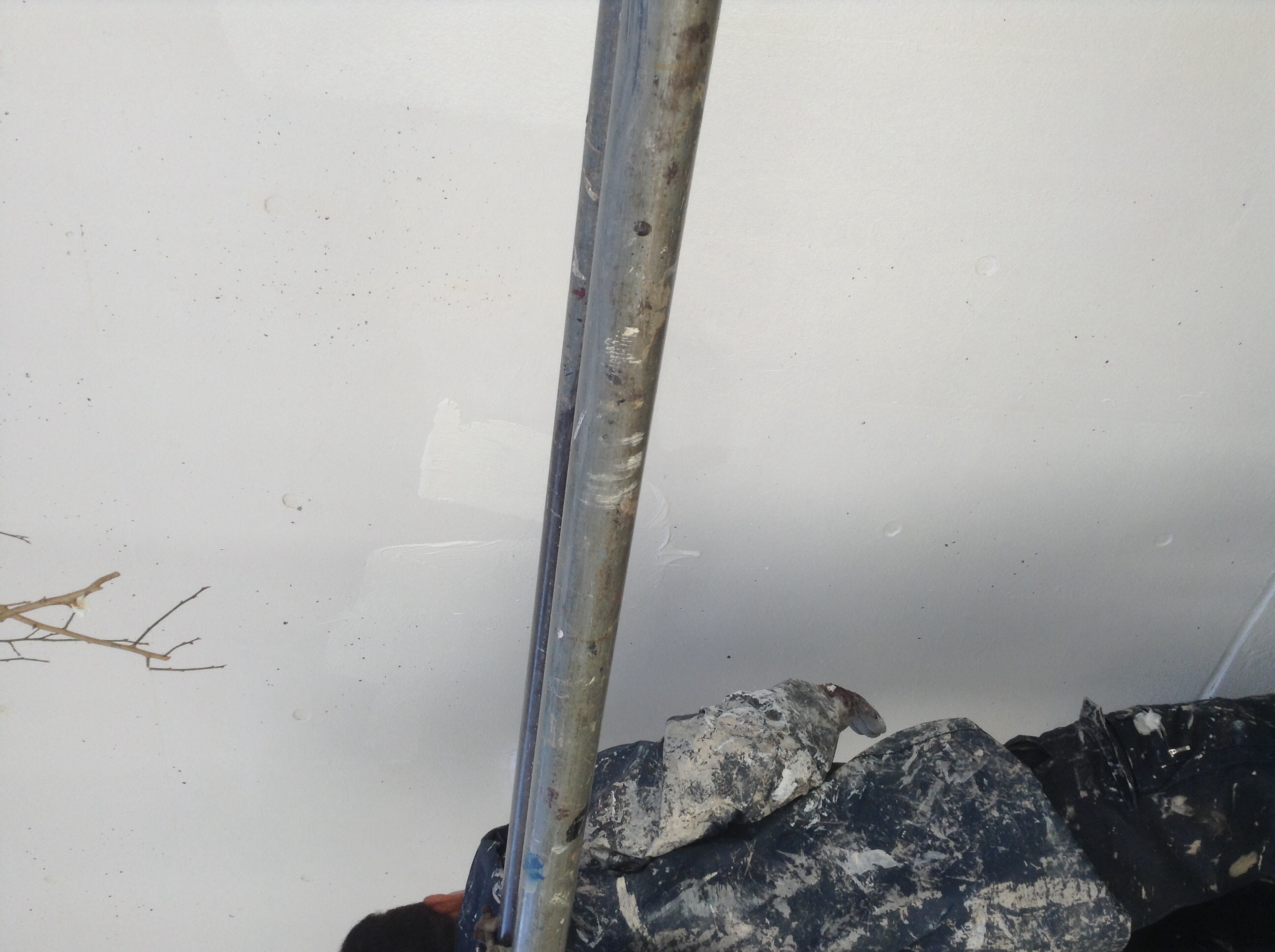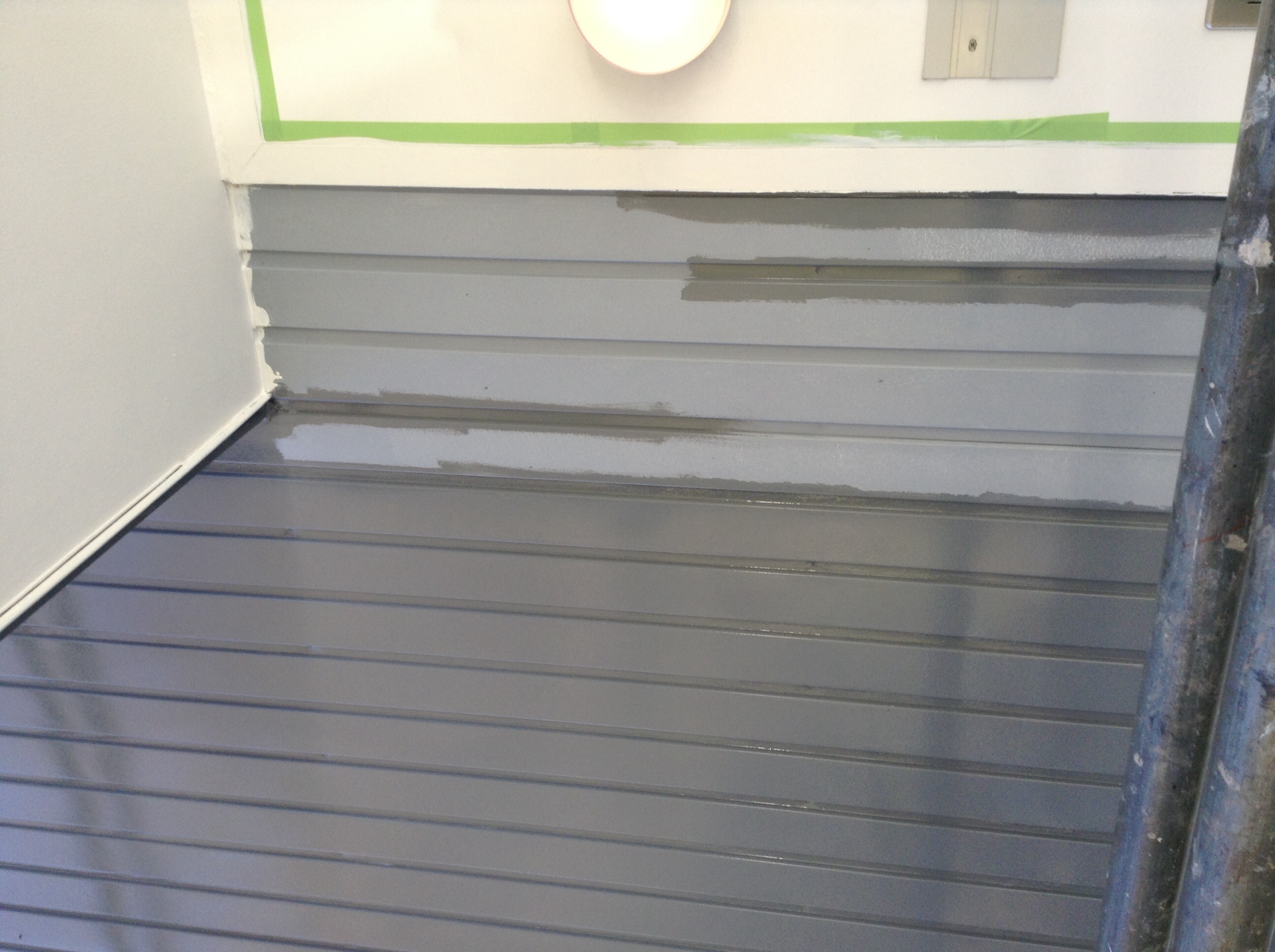 本日の作業内容は、ガルバリウム板のヤネフレッシュによる上塗りです。 さらに打放し壁の養生及び下塗りです。 屋根の上からの写真です。すばらしい景色でしょ!