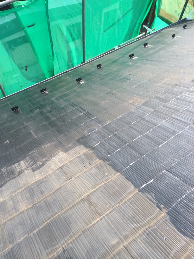 コロニアル屋根はタスペーサー挿入後、プライマー塗布。