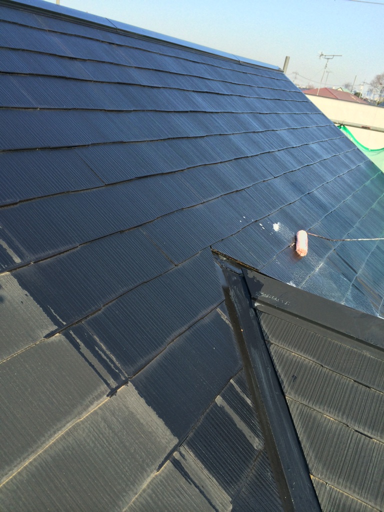 本日はまずコロニアル屋根のプライマー塗布。