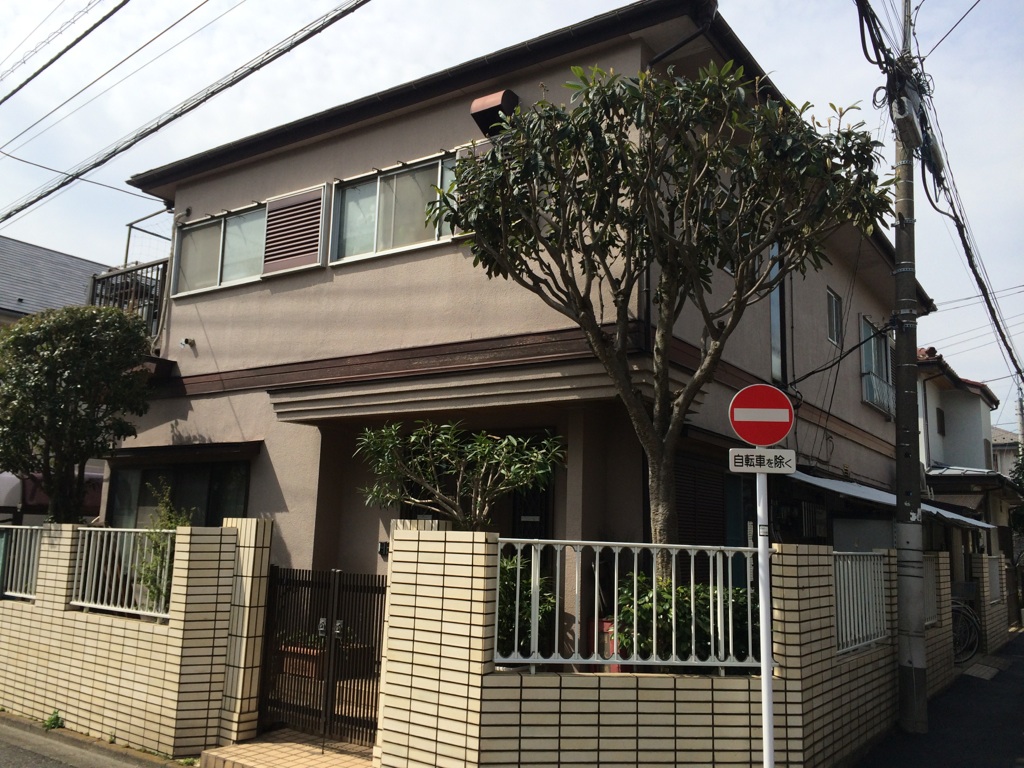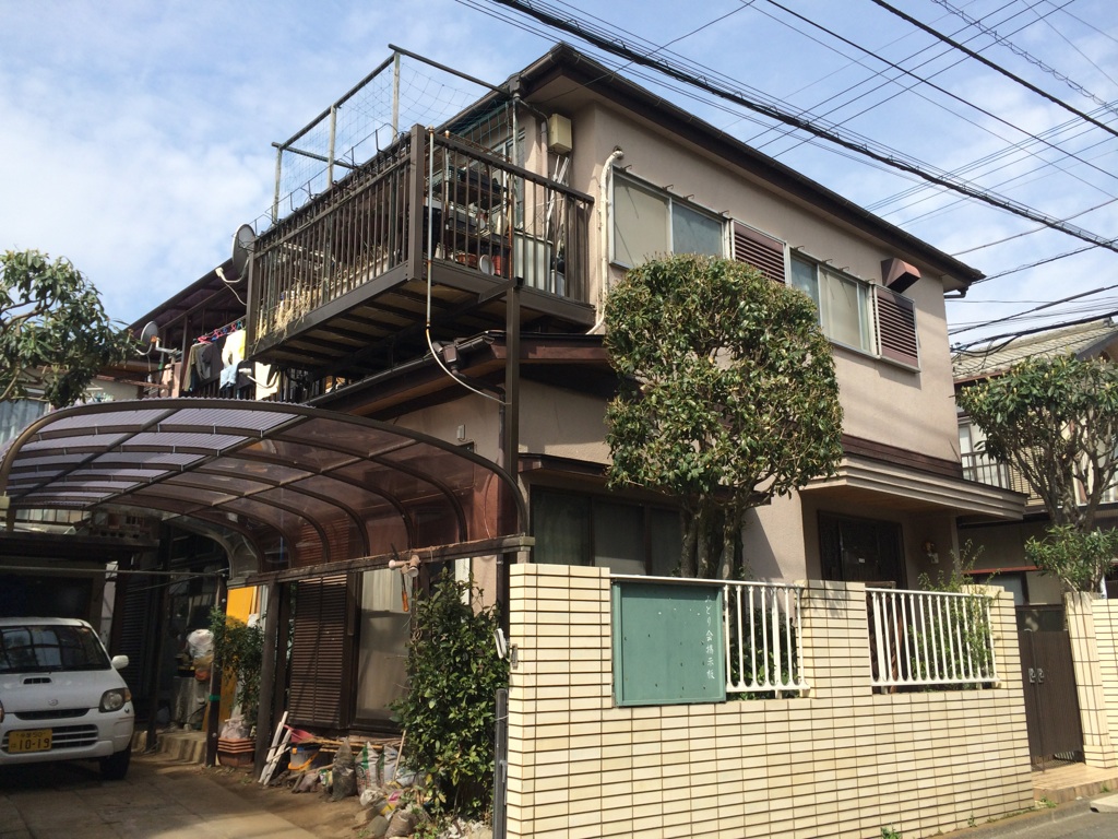 屋根より雨漏れがするらしく、今回コロニアル大屋根はガルバリウム屋根への葺き替え。雨漏れをしている部屋は屋根葺き替え後、内装天井のみ張替工事。駐車場の塀の解体補修工事。その他は塗装工事とさせていただく事になりました。