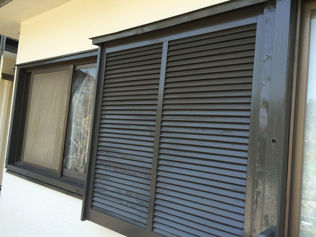 本日は木部、トタン、その他の塗装をマイルドシリコンにて施工いたあしました。今回はアルミサッシのようなブロンズ色での選定になり、コロニアルと合わせて色の感じがかわりました。