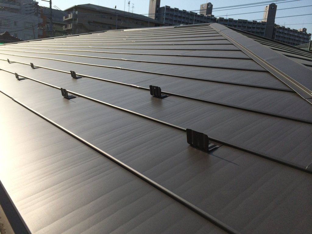 屋根のガルバリウム葺き替え工事も終わり、足場を外します。