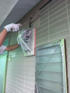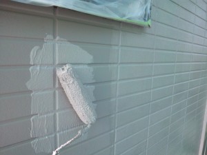 このてのサイディングはシーラーだと中塗りが滑ってしまい、うまく付着しないため当社ではこのような方法にしております。