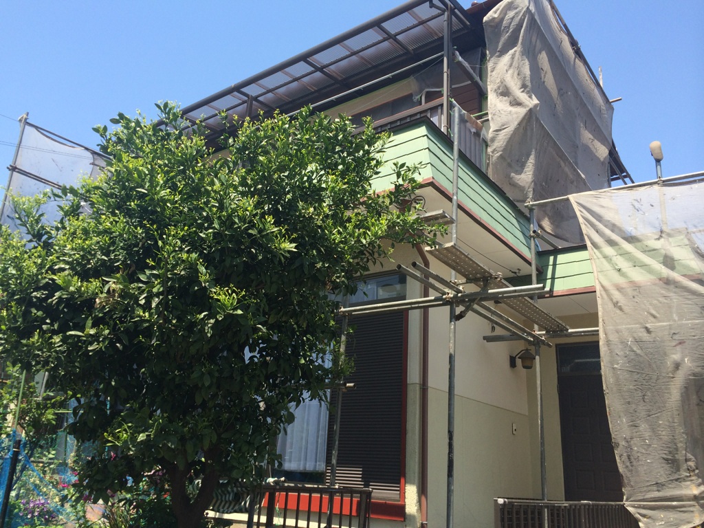まずはいつも同様足場の施工からです。