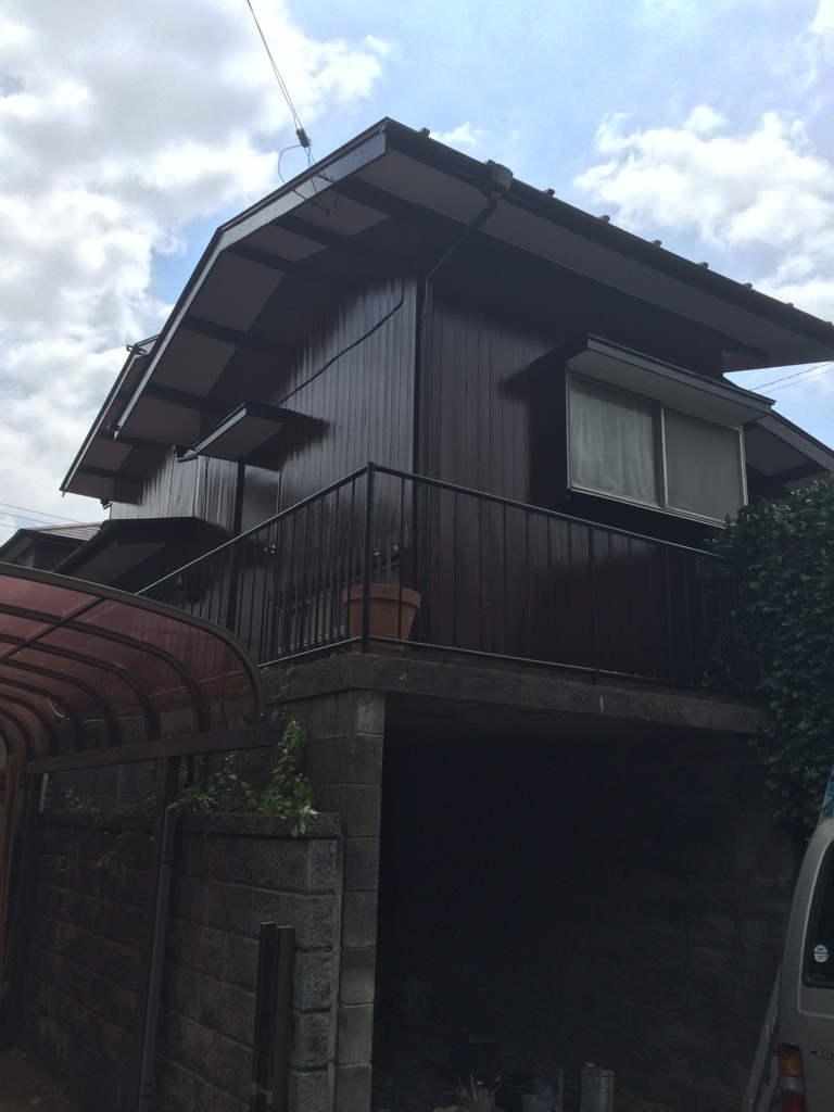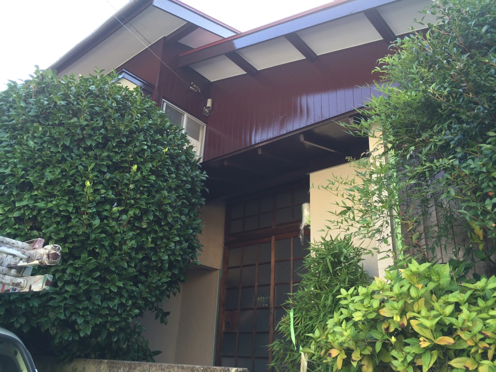 最後に玄関横のモルタル壁の下塗りフィーラー。上塗りに透湿性防かび塗料(水が浸透している箇所があるため、この塗料での選択をしました)を塗布。