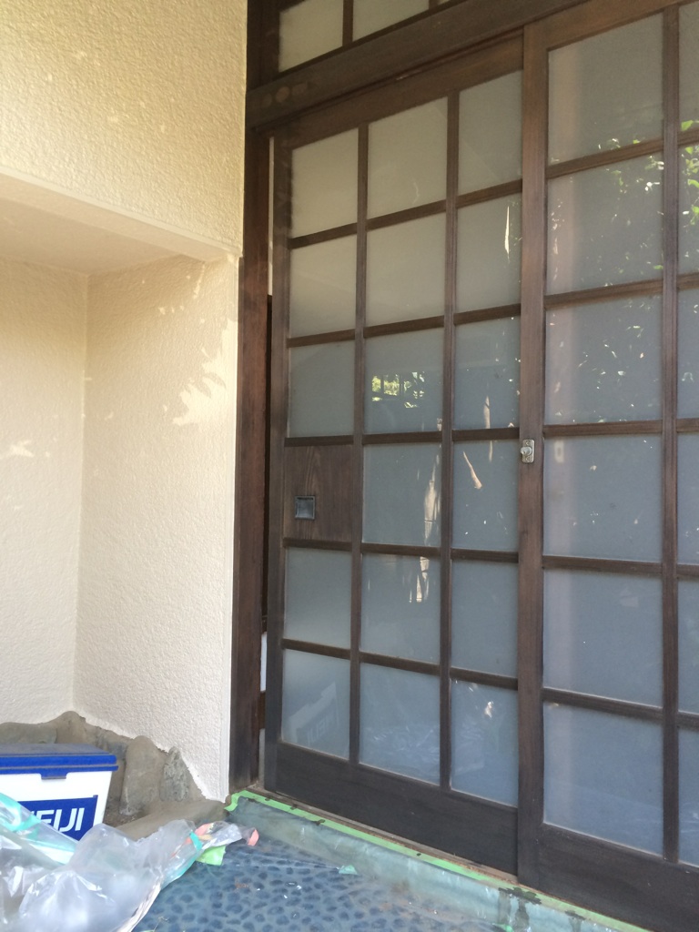 玄関の建具をキシラデコール(防腐剤入り塗料)で仕上げ。