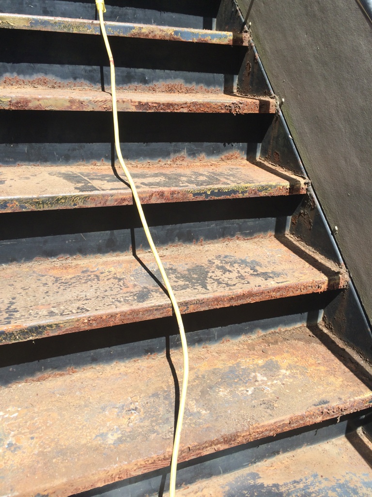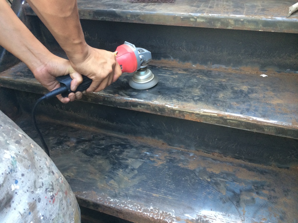 続いてけれん作業。サンダーを用いての作業です。シート剥がしとサンダ―けれんがはなり大変な作業でした。