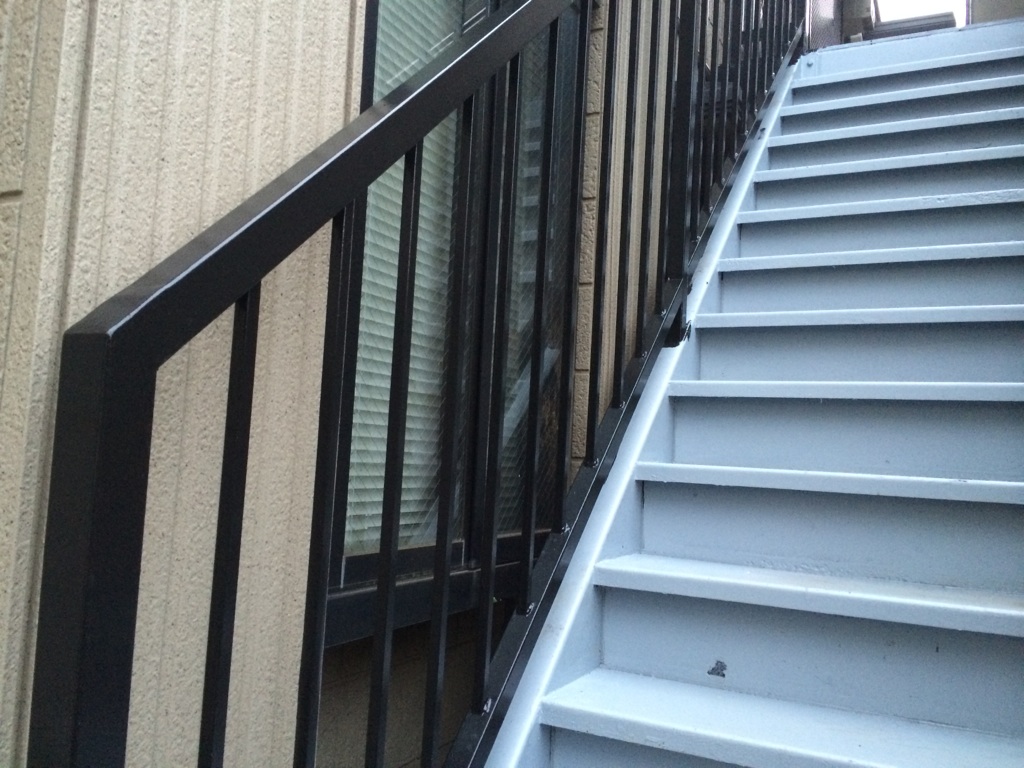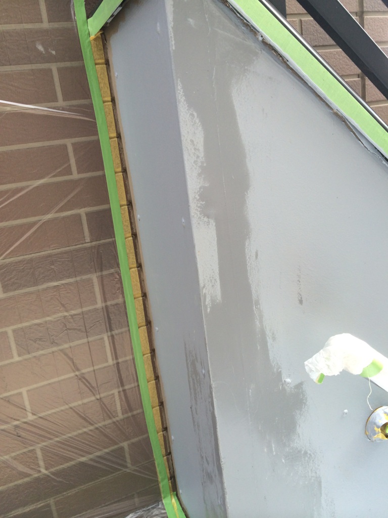 鉄骨部分の上塗りをマイルドシリコン黒色にて塗装。