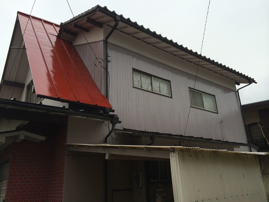 トタン下屋根の塗装をマイルドシリコン(黒)にて施工。