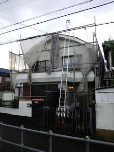足場施工、メッシュシート張付け、高圧洗浄までの工程を行いました。