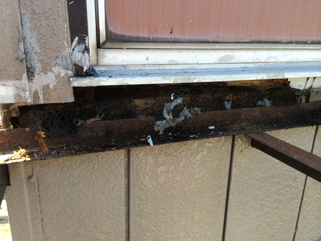 その隙間を塞ぎ鉄板サイディングにて補修。