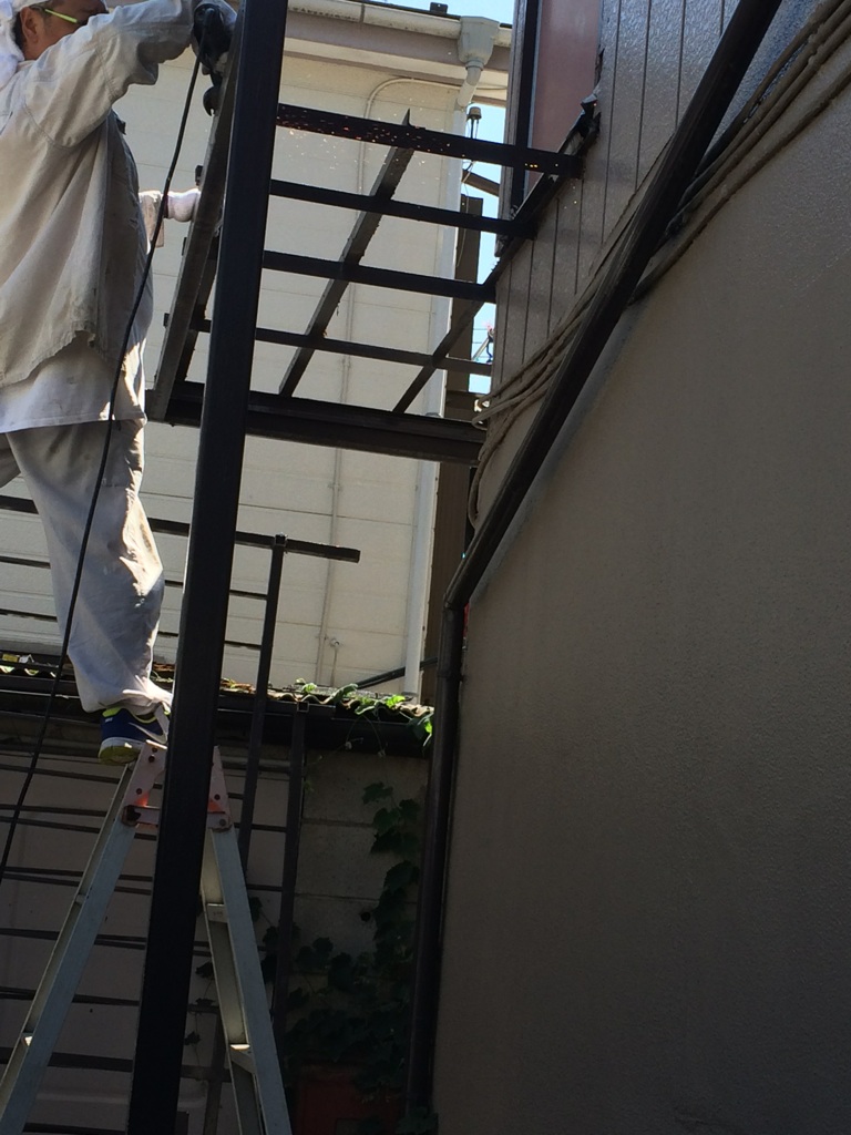 本日はまず、東面の鉄骨ベランダ撤去並びに南面ベランダの調査のための補修工事を行います。