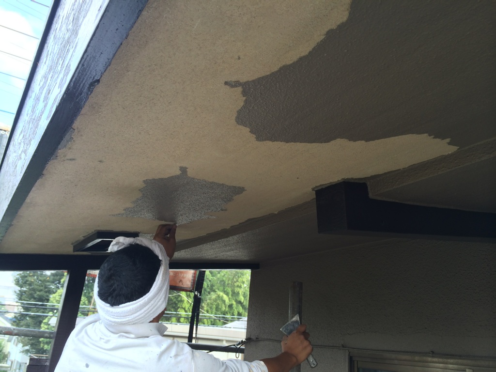 旧外壁が、剥離をしているために急きょ浮いている塗装膜の剥離をいたしました。