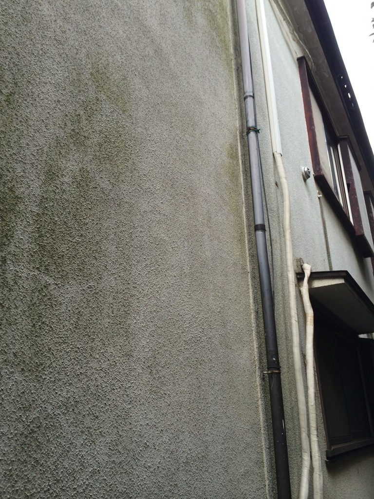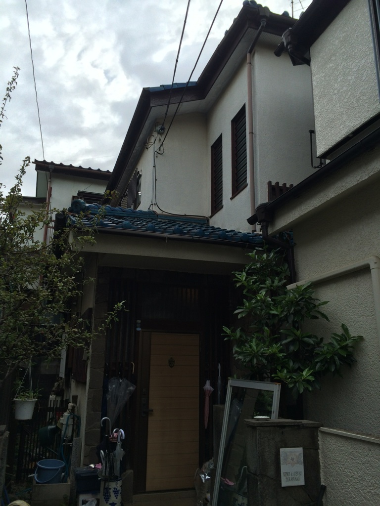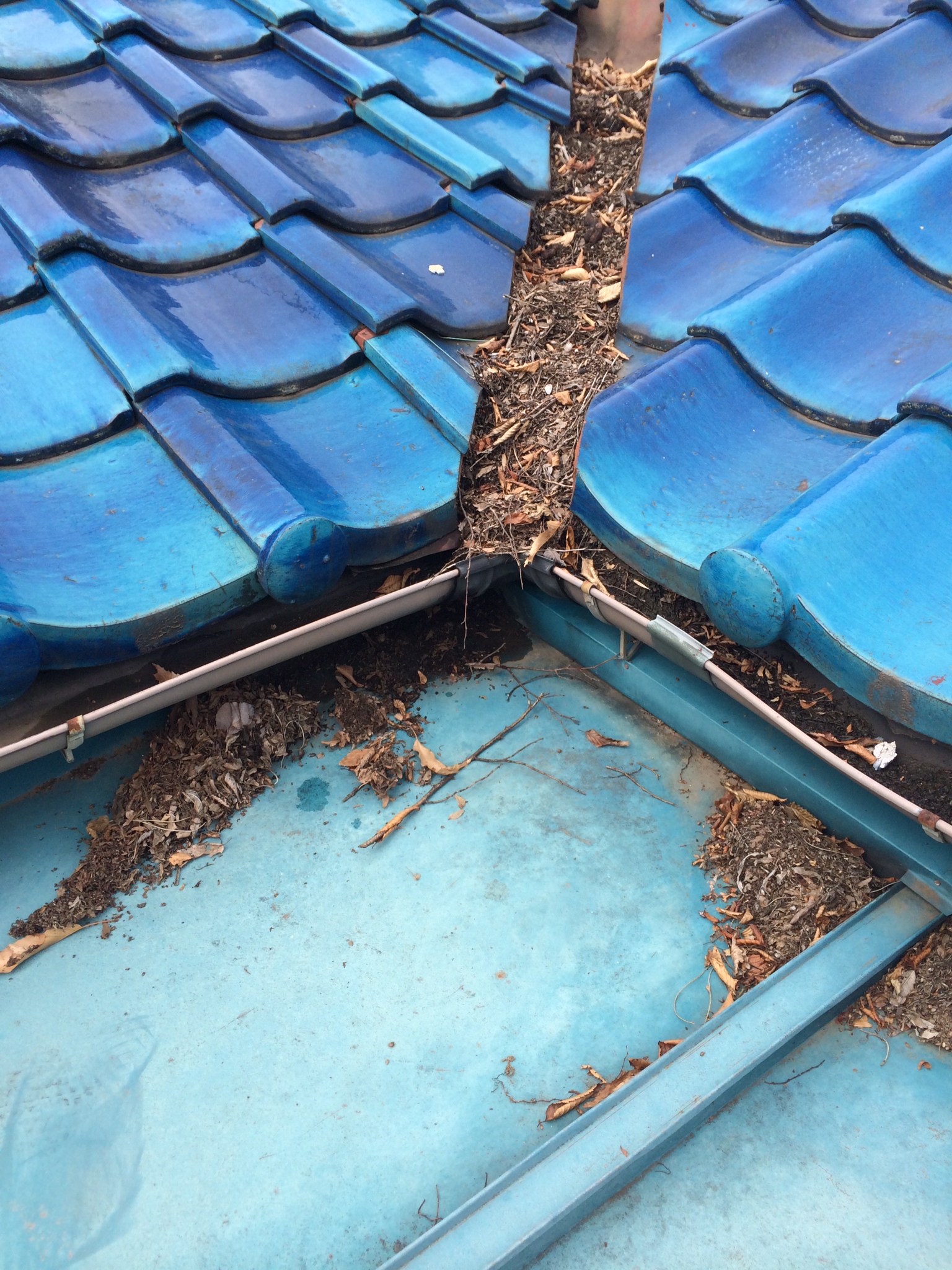 雨漏れがしているらしく、どうも増築部分からの漏水だと思われます。写真のようにゴミつまりが原因かどこかに亀裂があるのか、工事中は調査をして修理したいと思います。