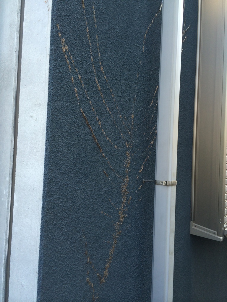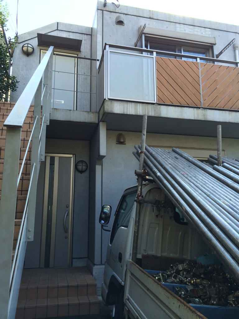 それでも正面の打ち放し壁の汚れや、鉄骨のサビ、防水部分の浮き等が目立つようになってきているので、今の施工が賢明でしょう。