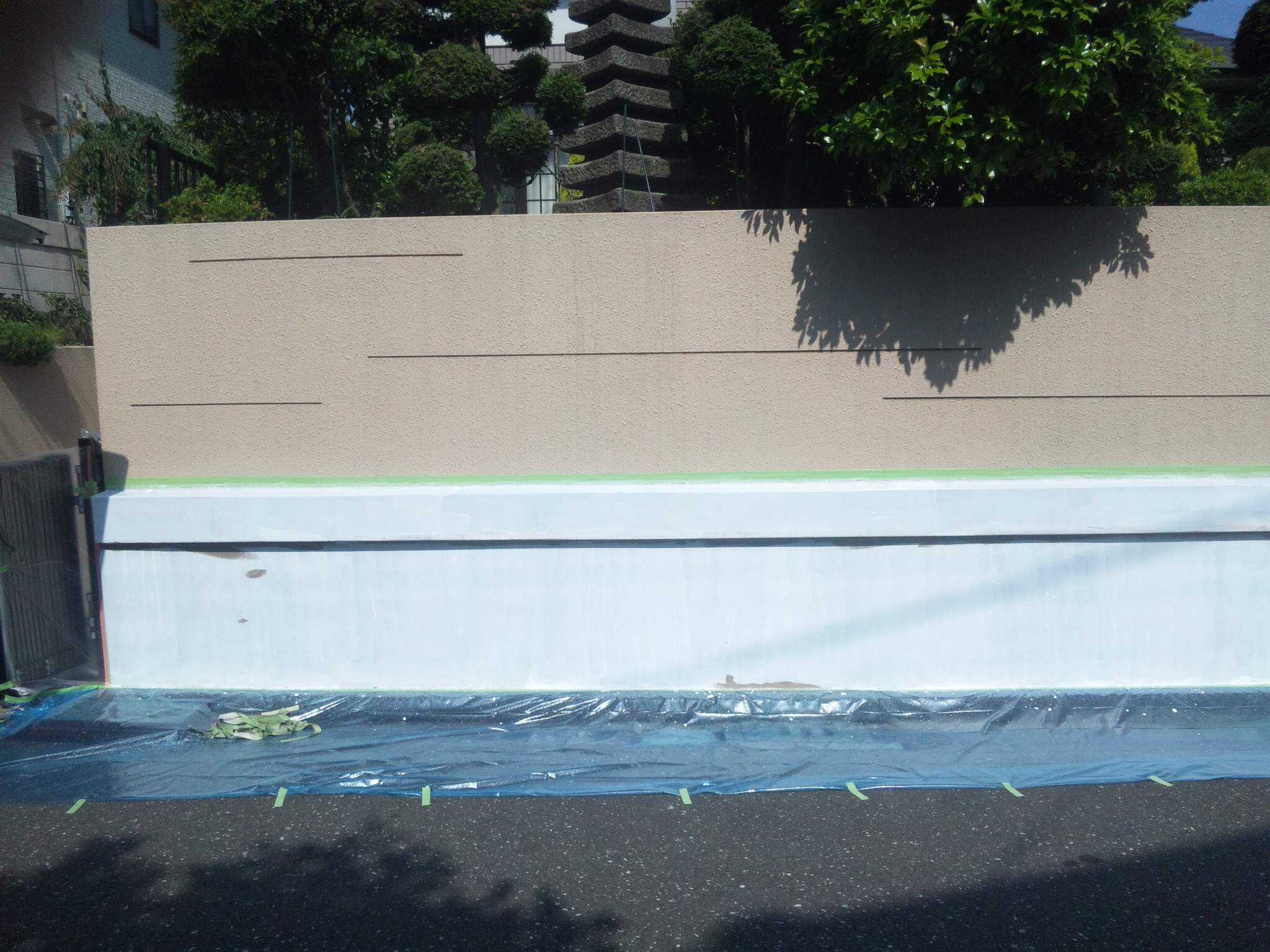 白くなっている部分がシーラーです。シーラーとは上塗りするものと躯体とをくっける、いわば接着剤のようなものです。