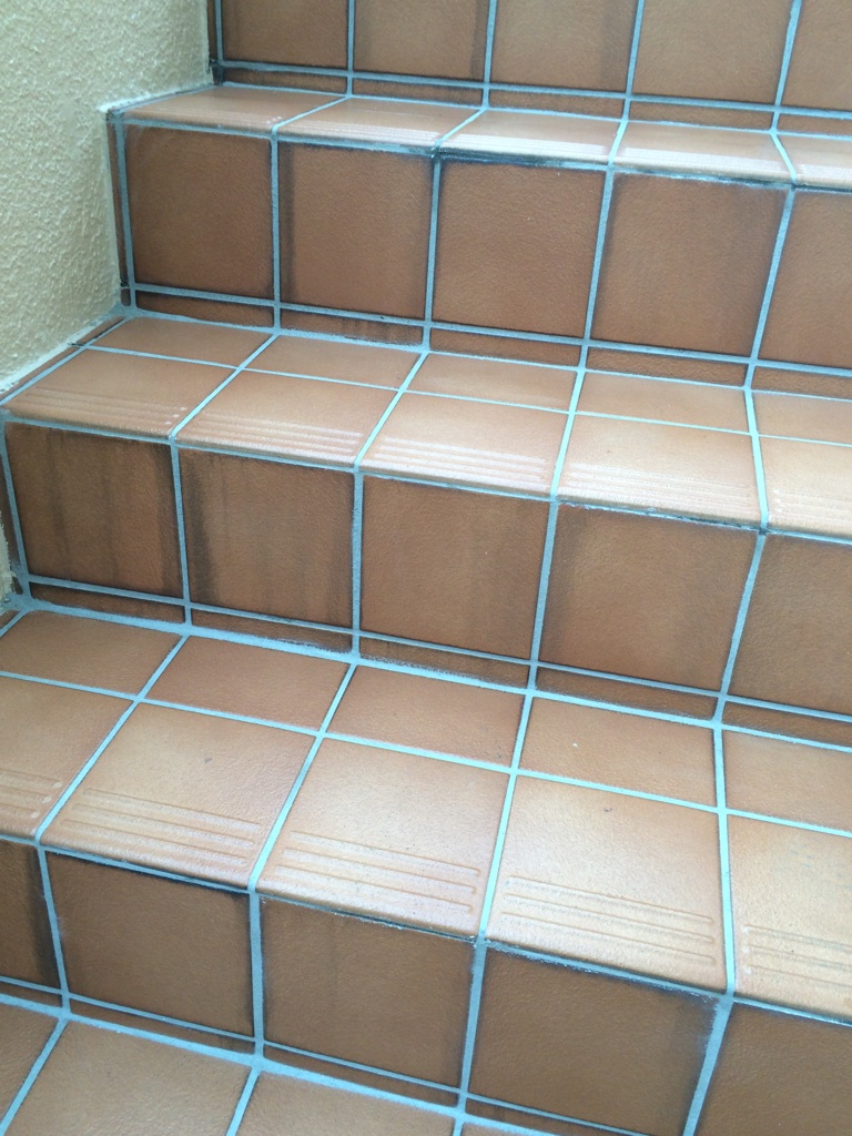 階段タイルの目地入れ補修。