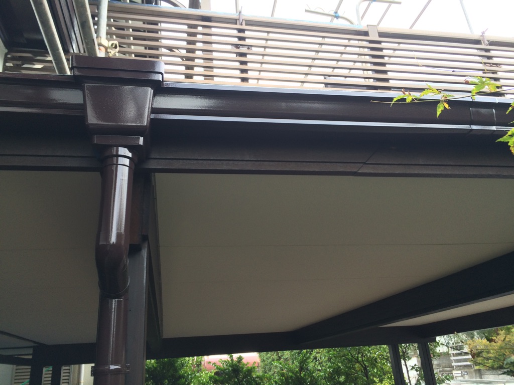 雨樋及び鉄骨を 同 ココナッツ色にて塗装。
