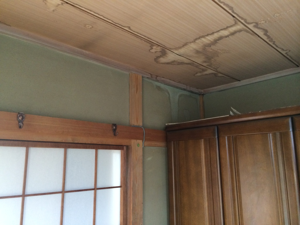 おそらくは、屋根塗装の際に縁切りをしていなかったため、雨漏りがしだしたのだと思われます。