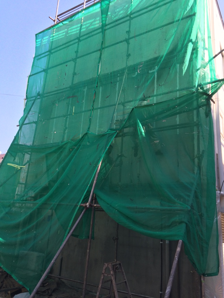 足場の組み立て。