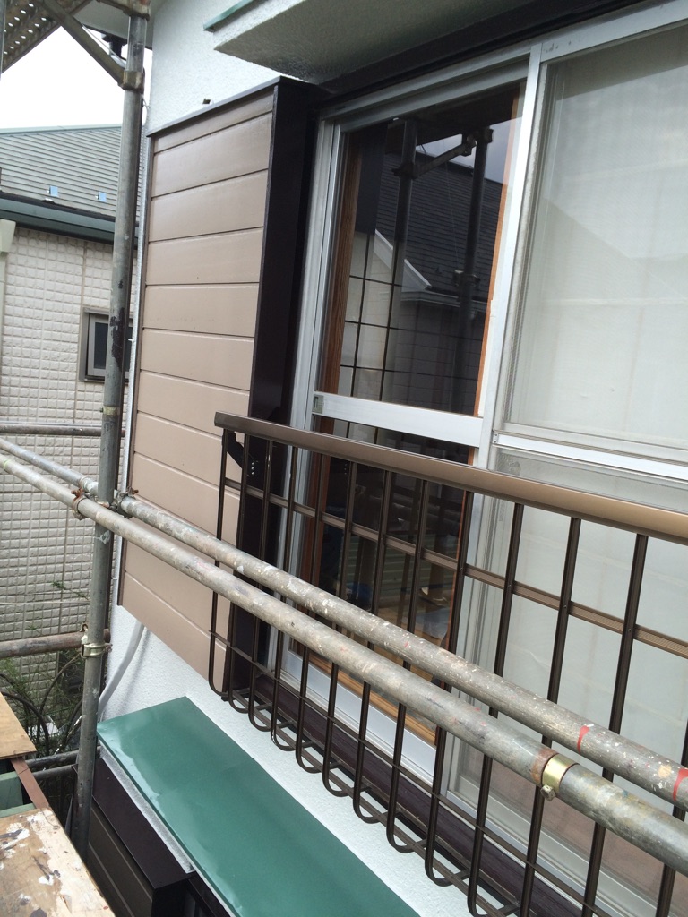 トタン霧除け塗装を 色アイリッシュグリーンにて。