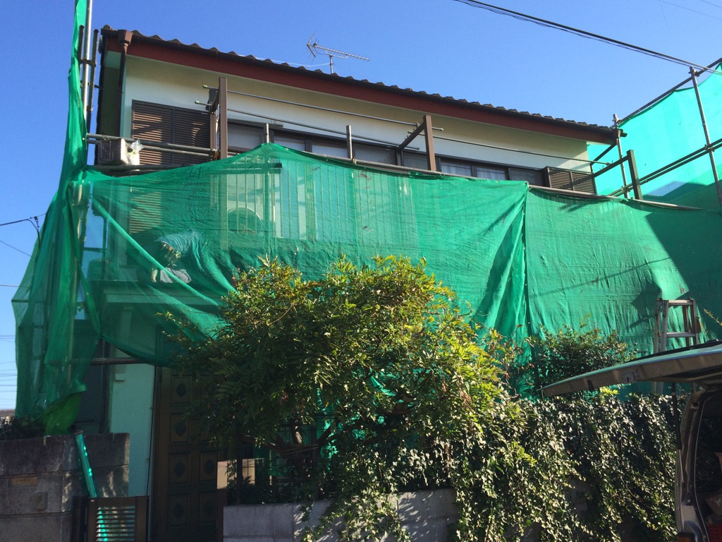メッシュシート張り付け。