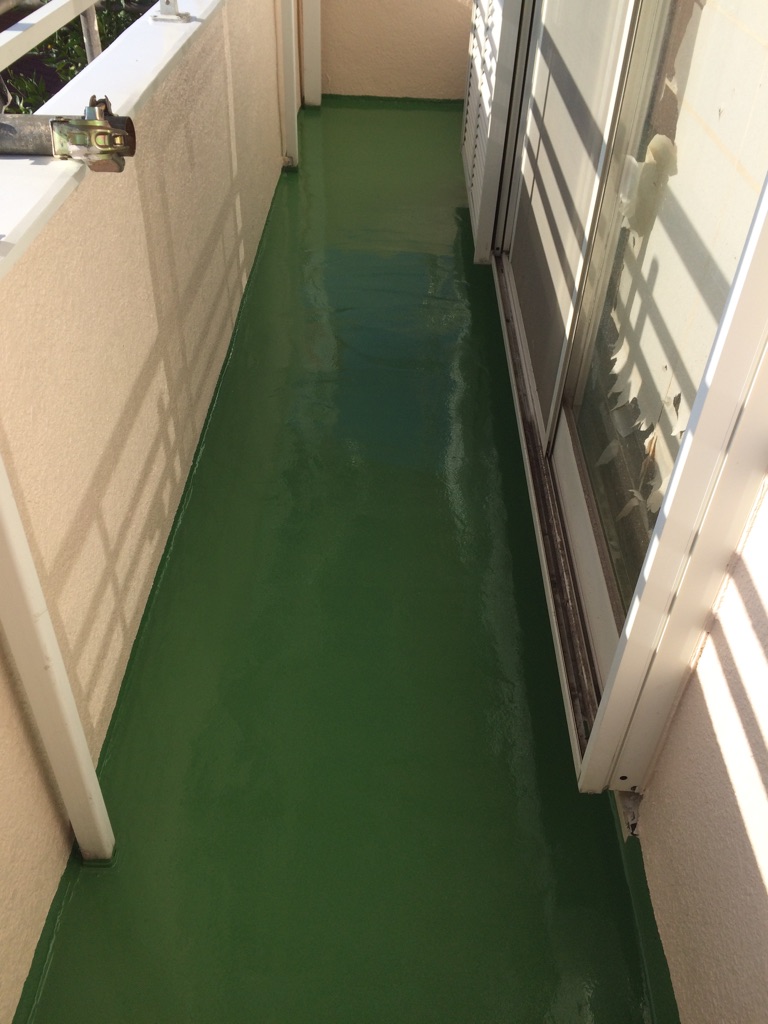 ベランダ床防水のプライマー塗布及びトップコート塗装。