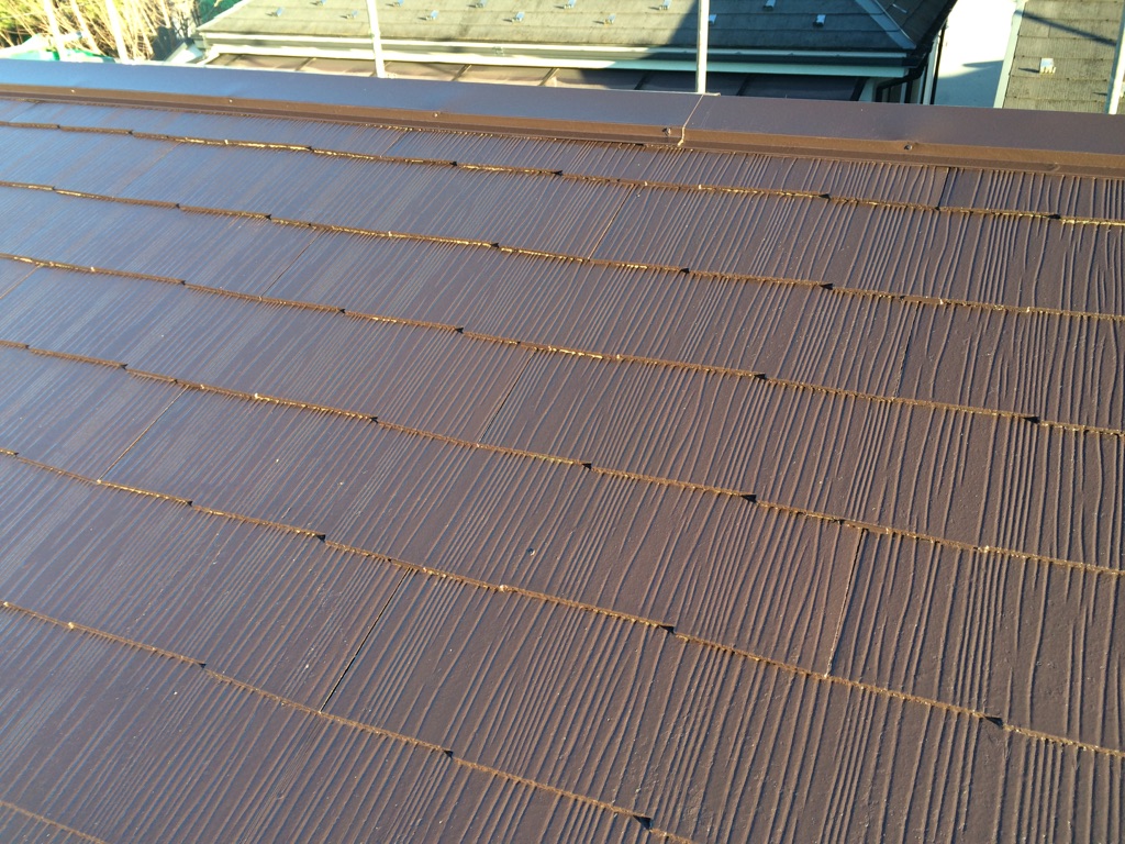 コロニアル大屋根塗装、中塗り及び上塗りをヤネフレッシュにて。色 RC103