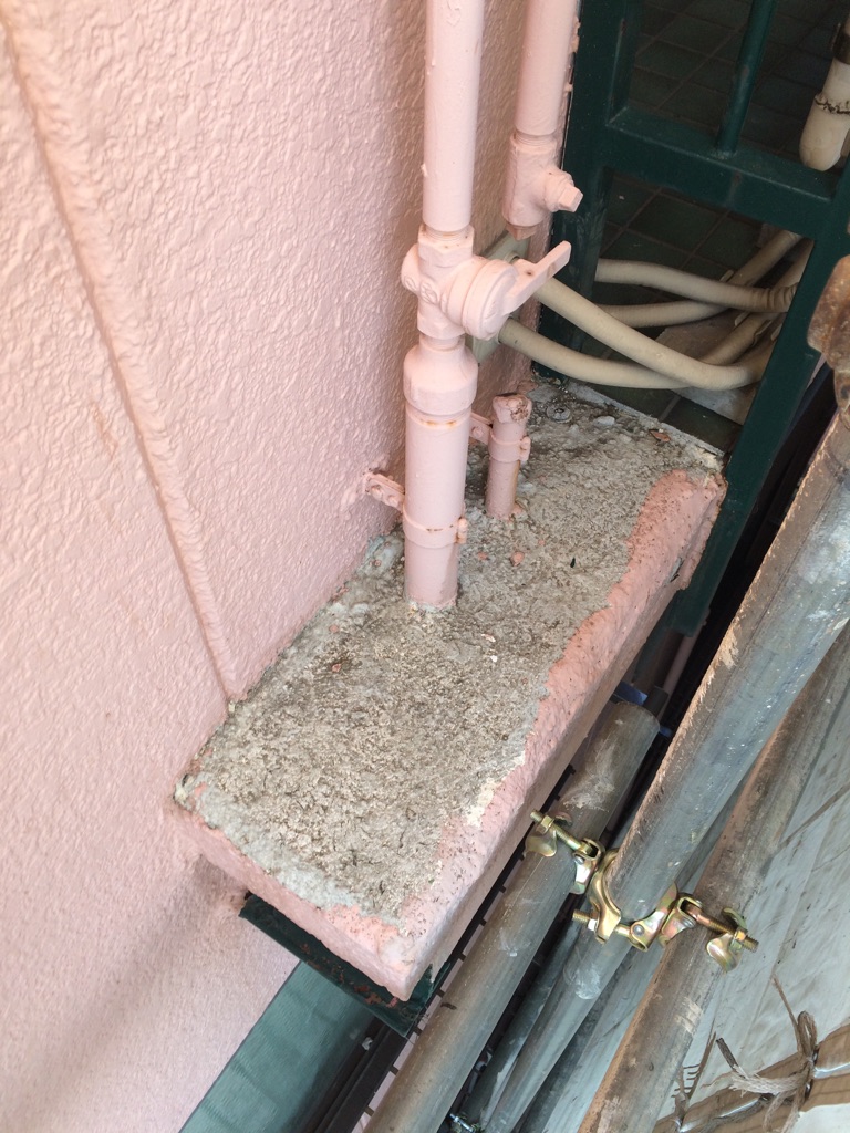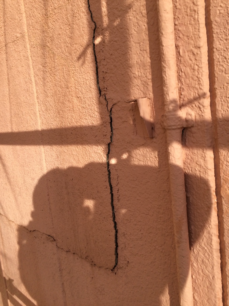 外壁のは一部、写真のように外壁が脱落しつつある状態です。おそらく、弱っている部分が地震によるものだと推測されます。