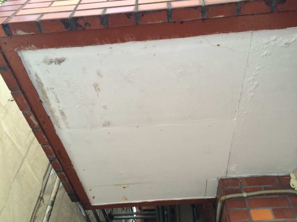 一見、外壁はきれいに見えますが、クラックや前回の塗装工事の作業洩れが見られます。