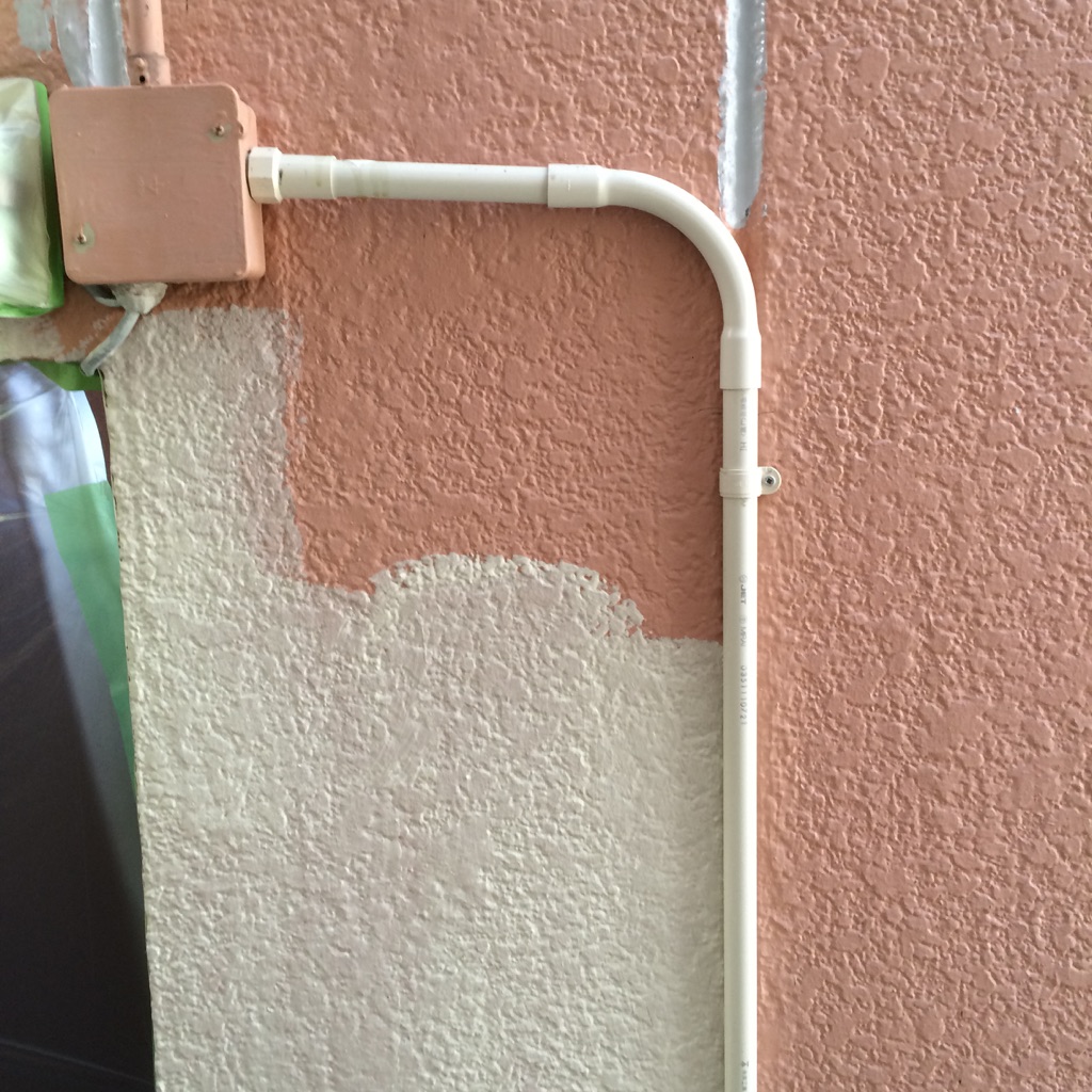 養生済みの部分の外壁下塗り フィーラー塗装。