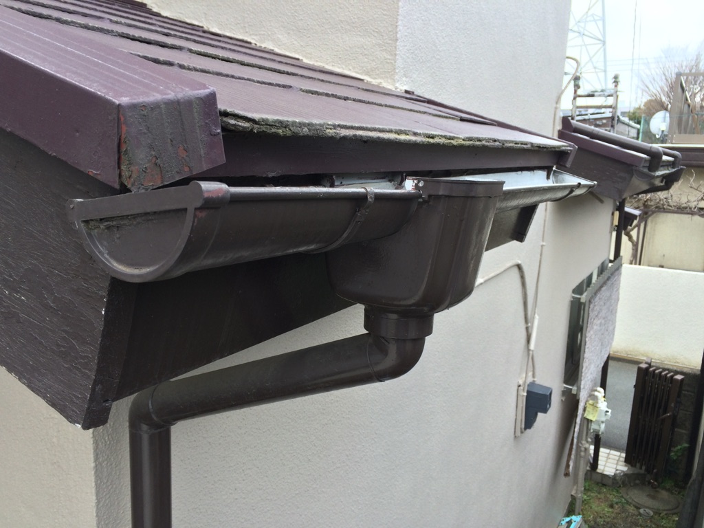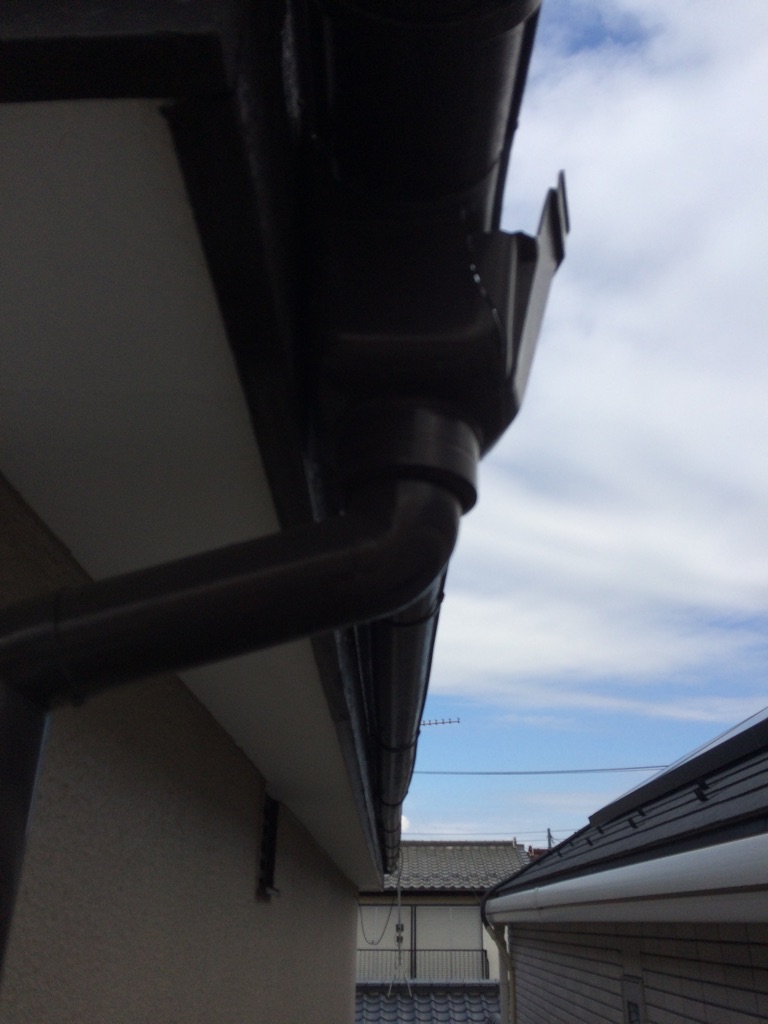 雨樋の割れている部分は交換。歪み等は補修、矯正。吊り金具を追加するなどの補修工事です。