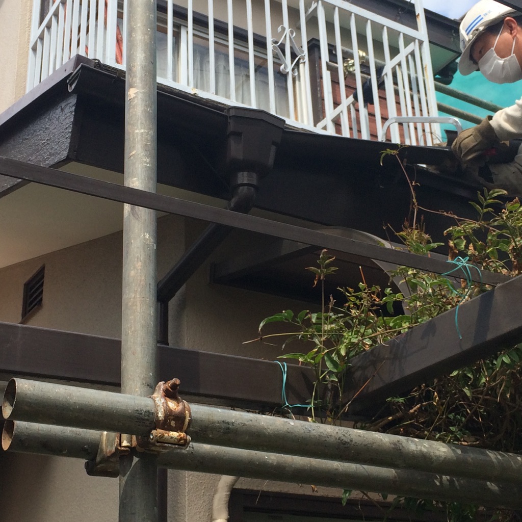 既存雨樋の外し。