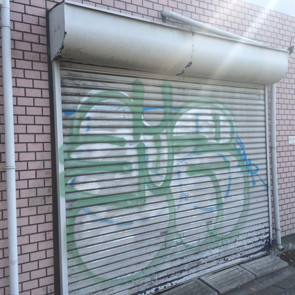 外壁の一部塗りつぶし、その他は洗浄後クリアー塗装。シャッターの塗り替え。