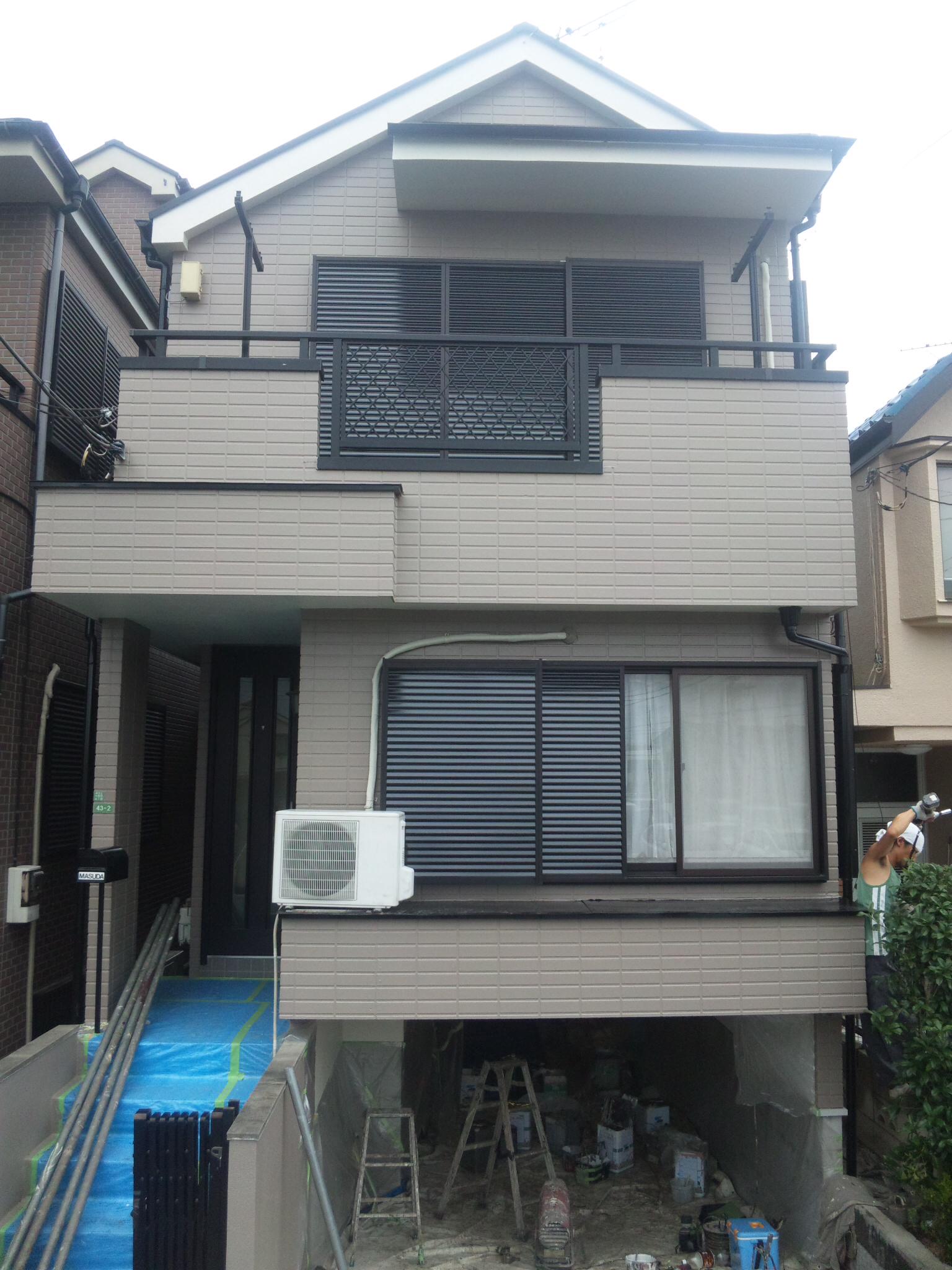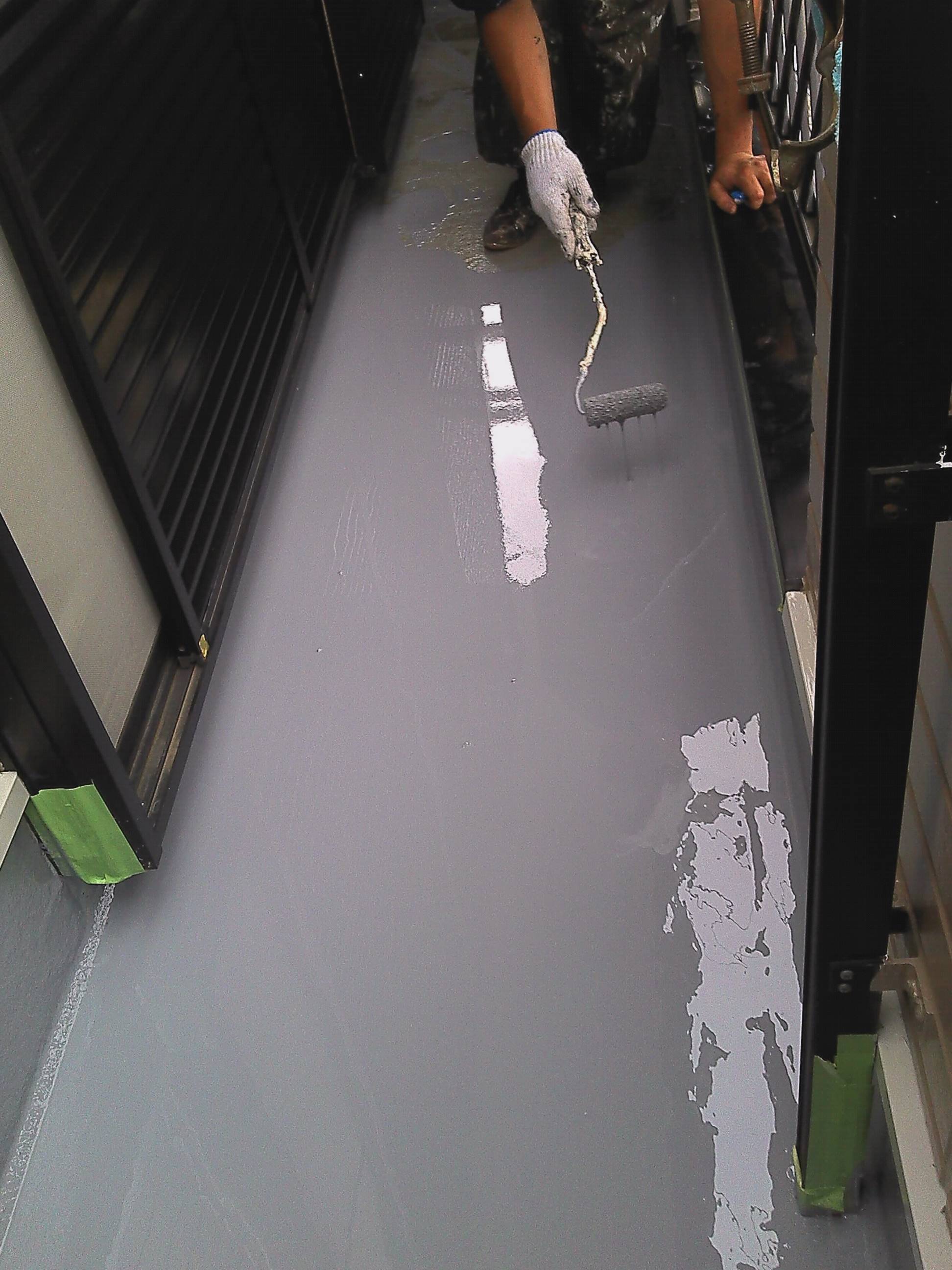 ベランダの防水の仕上げをして、足場の解体、周りの掃除で全て完了いたしました。